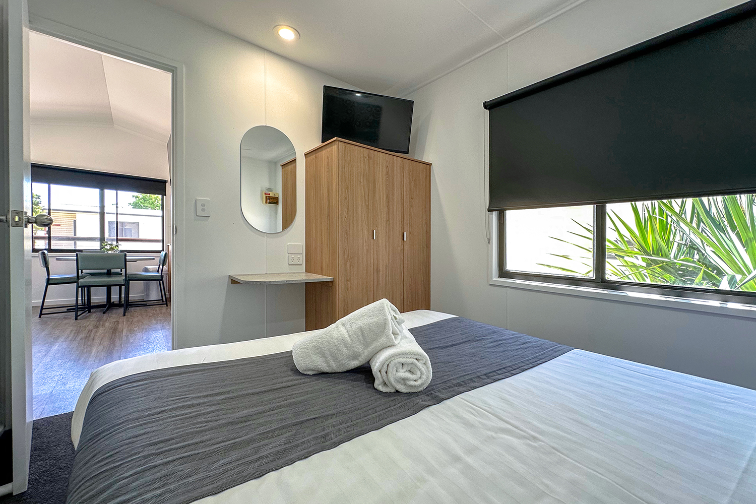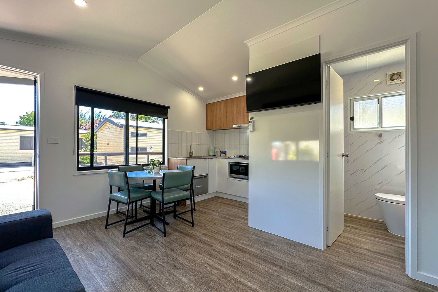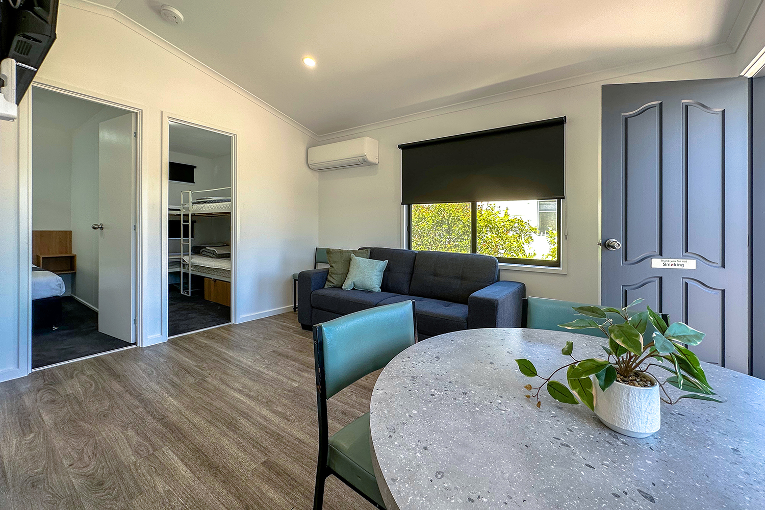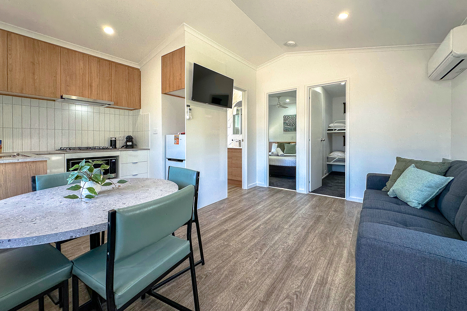 Newly renovated 2026 with new kitchens and bathrooms. The 2 Bedroom – Family Units feature fully self-contained accommodation with verandas and are conveniently situated in close proximity to the pump track, jumping pillow and playground areas.