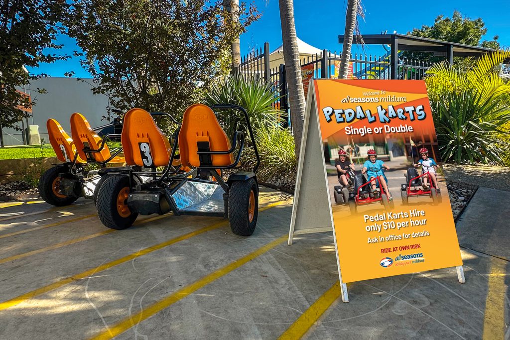 Zoom around the park in our fun Pedal Karts. Choose from a single kart or have twice as much fun in a double kart.
